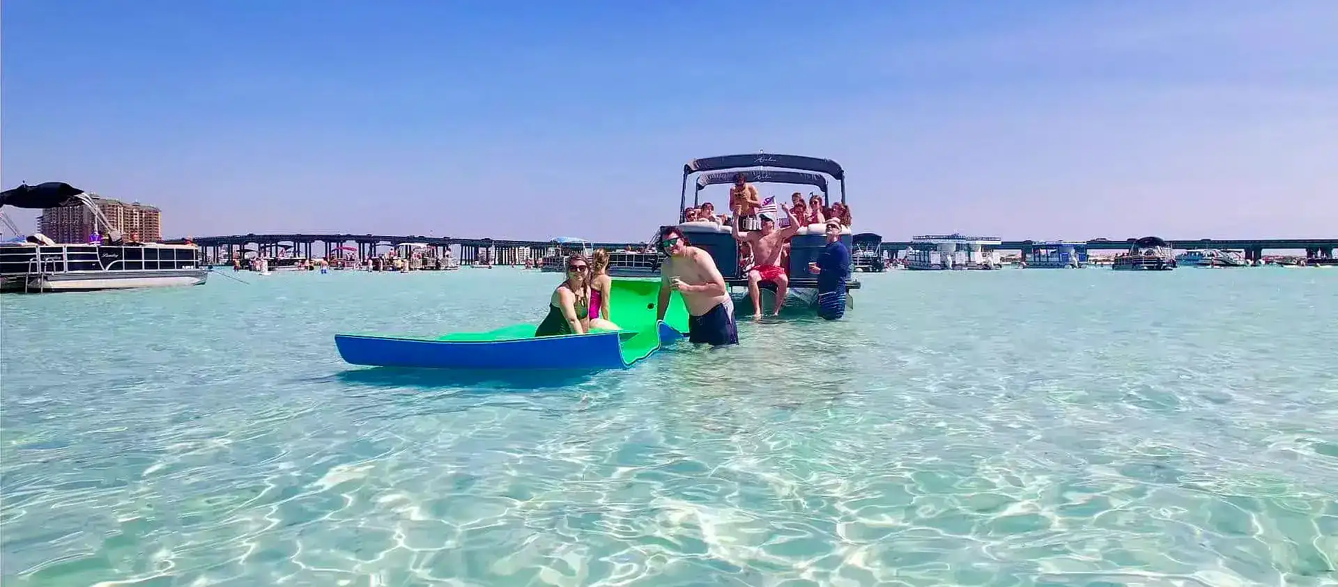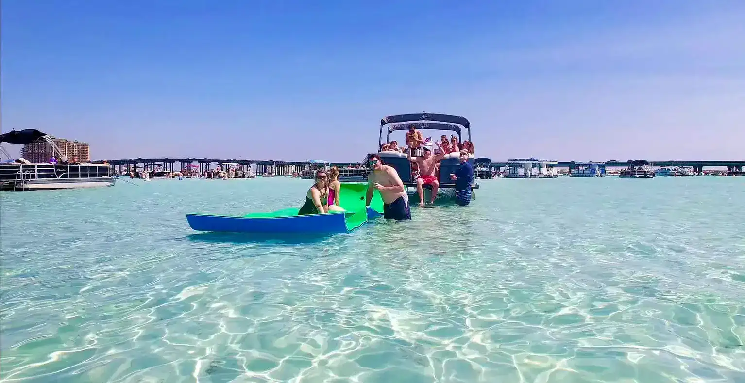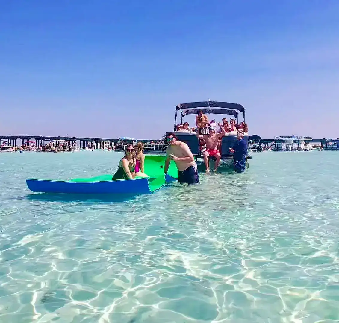 Our premium pontoon charters offer one of the most enjoyable and convenient ways to experience Crab Island near 30A—private, captain-led, and designed for effortless fun on the water.