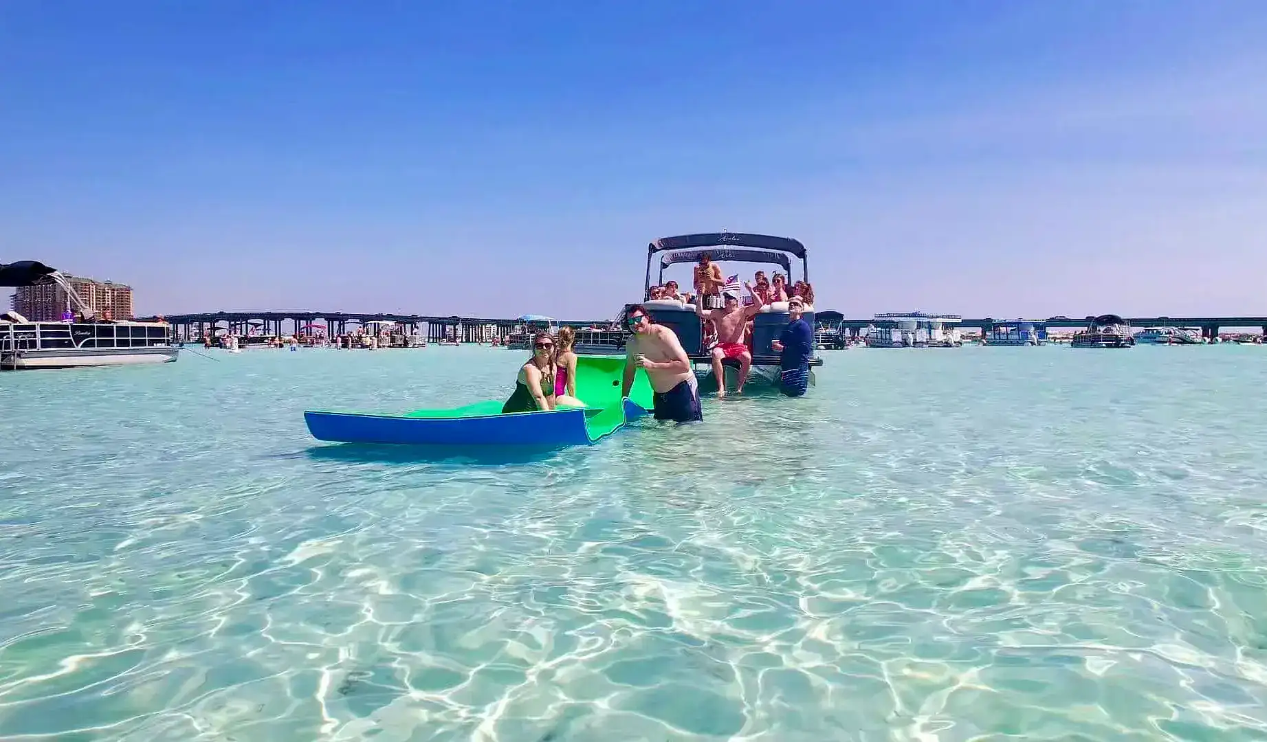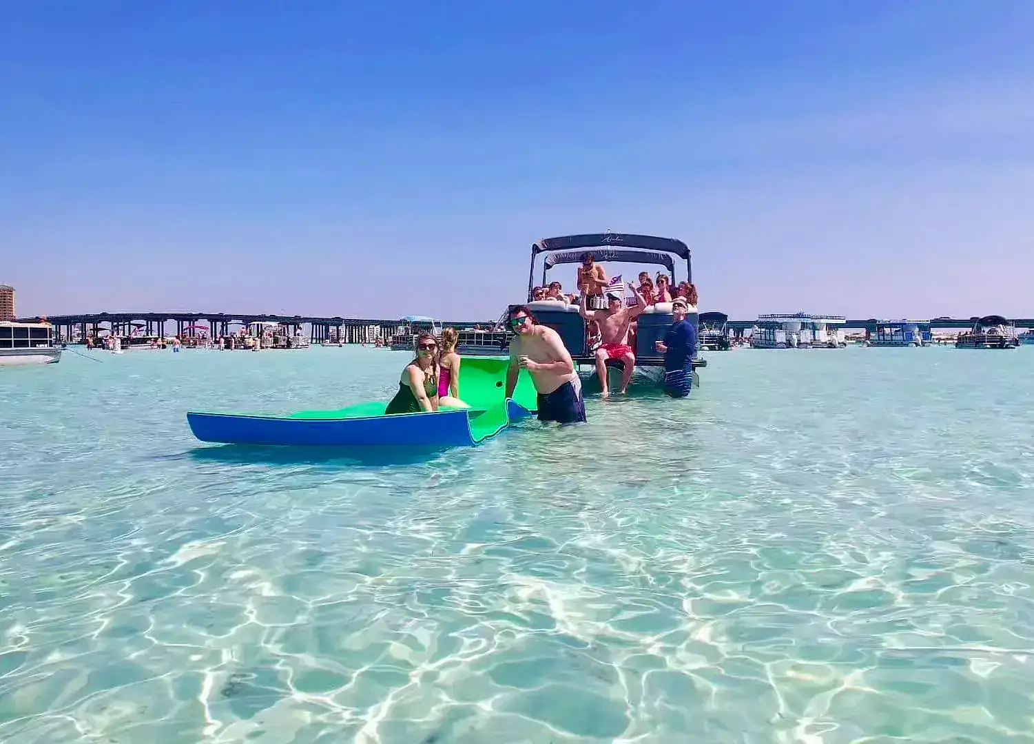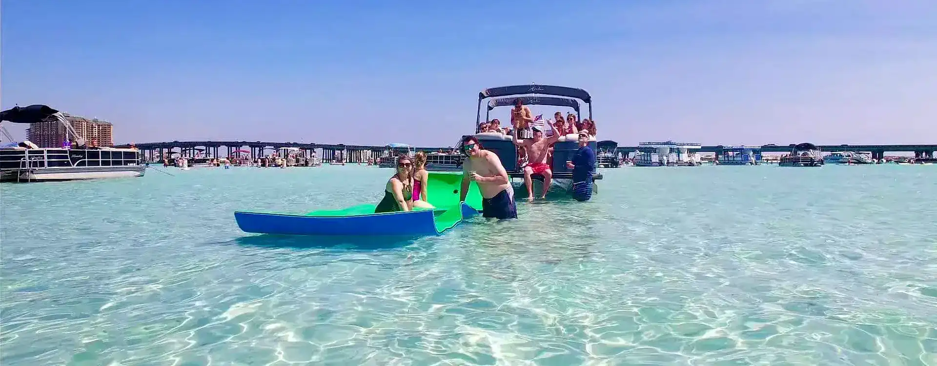 Our premium pontoon charters offer one of the most enjoyable and convenient ways to experience Crab Island near 30A—private, captain-led, and designed for effortless fun on the water.